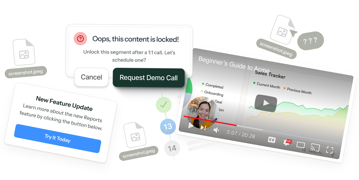 Yes! Add Chapters with email capture, calendar booking via direct integrations with Chili Piper and Calendly (coming soon), or multi-CTA buttons so visitors raise their hand right at the “Aha!” moment.