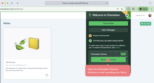 Create a free Chameleon account and start building Interactive Demos immediately. No trial limits and no credit card needed!