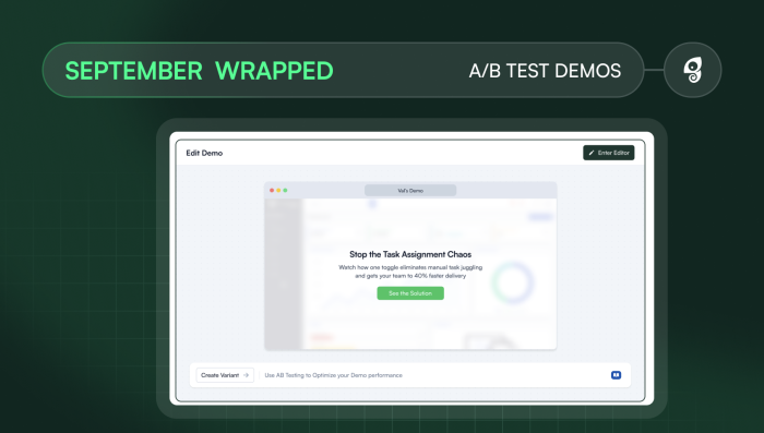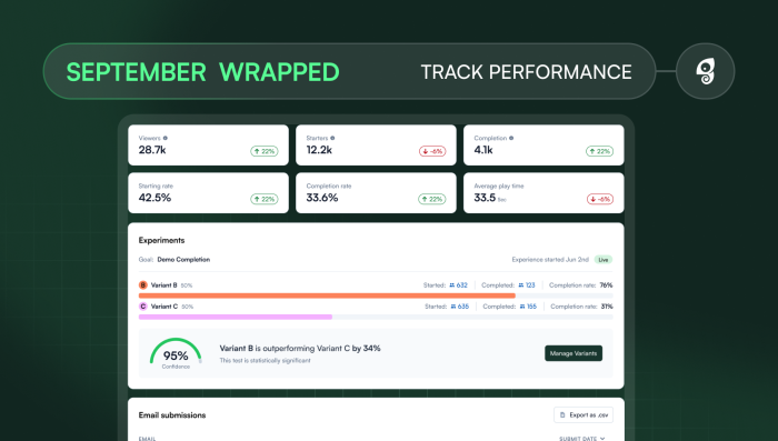 Here's the thing about Demo optimization: "it feels like this version works better" isn't a strategy. Chameleon’s A/B testing for Interactive Demos lets you test variations and measure what actually drives engagement and conversion. Create different Demo flows, test messaging, or experiment with showcasing different features—then let the data tell you which approach wins.