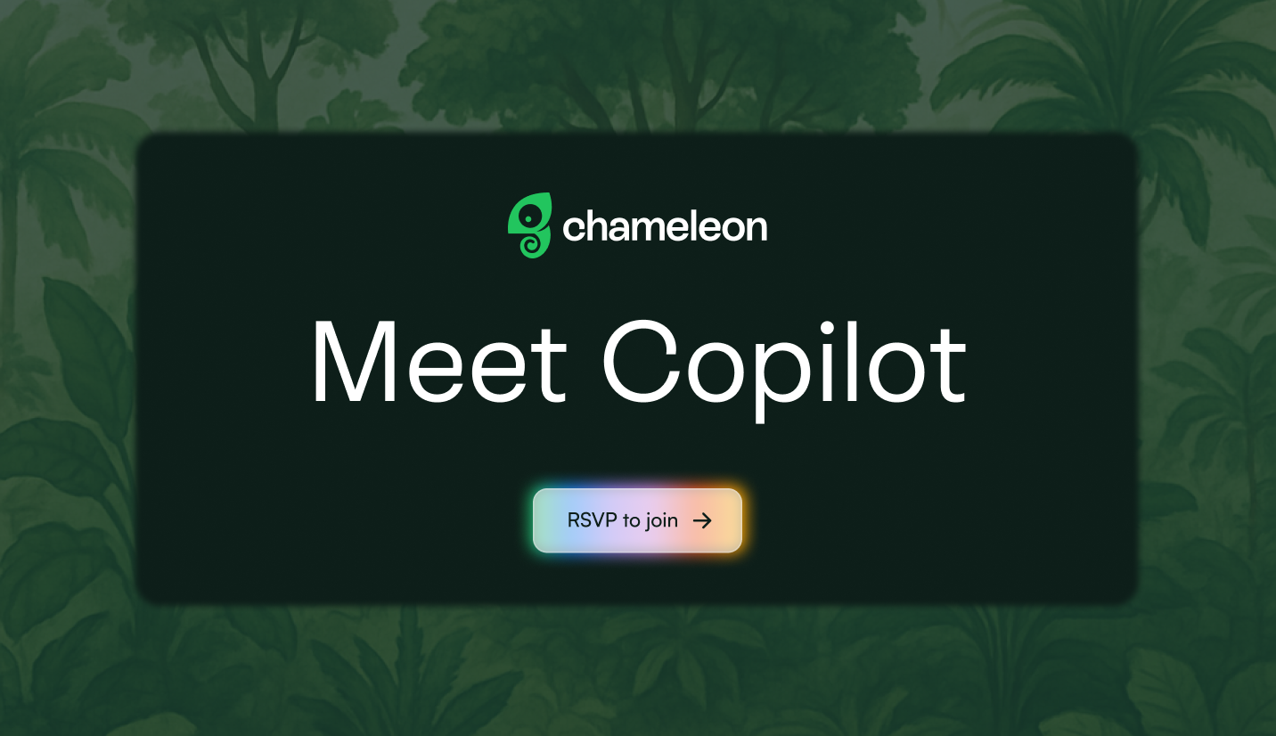 Watch us build a complete product launch campaign live, in under 30 minutes. Announcement, walkthrough, survey, done. This is what Copilot does -- Chameleon's AI with 10 years of product adoption expertise. See what production-ready actually looks like and come ask your questions.