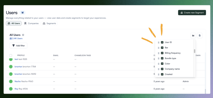 The new Companies View gives you a centralized place to review and manage all your account-level data in Chameleon. See which companies are in your product, how many users each one has, export lists, or build Segments starting from the company level instead of piecing together user profiles.