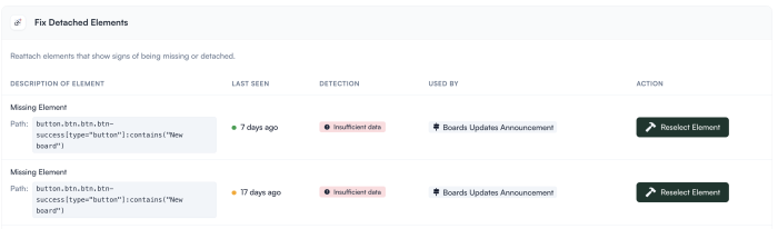 Ranger now pulls Elements Detection alerts into a single, centralized view, right alongside other account cleanup tasks. No more relying on inbox archaeology or mental reminders to check for detached elements. See what needs attention, fix it when it works for you, and move on. Fewer missed issues, faster reviews, and healthier Experiences at scale.